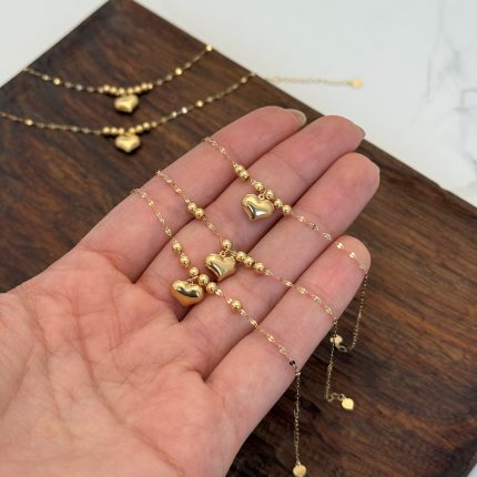 دستبند طلا زنجیری سه قلب