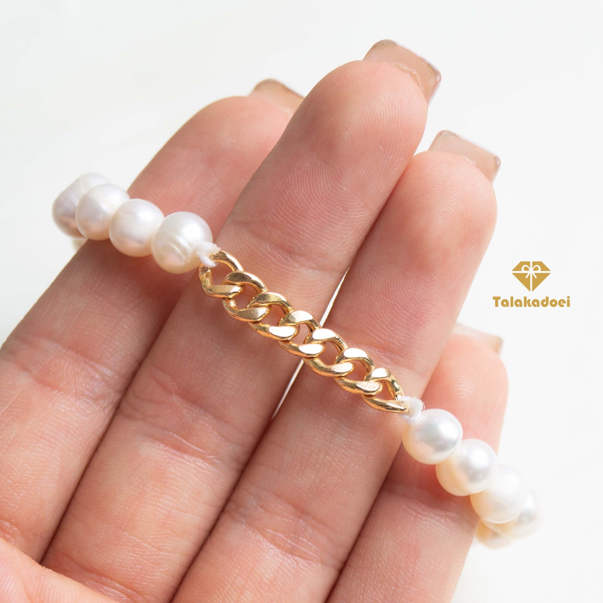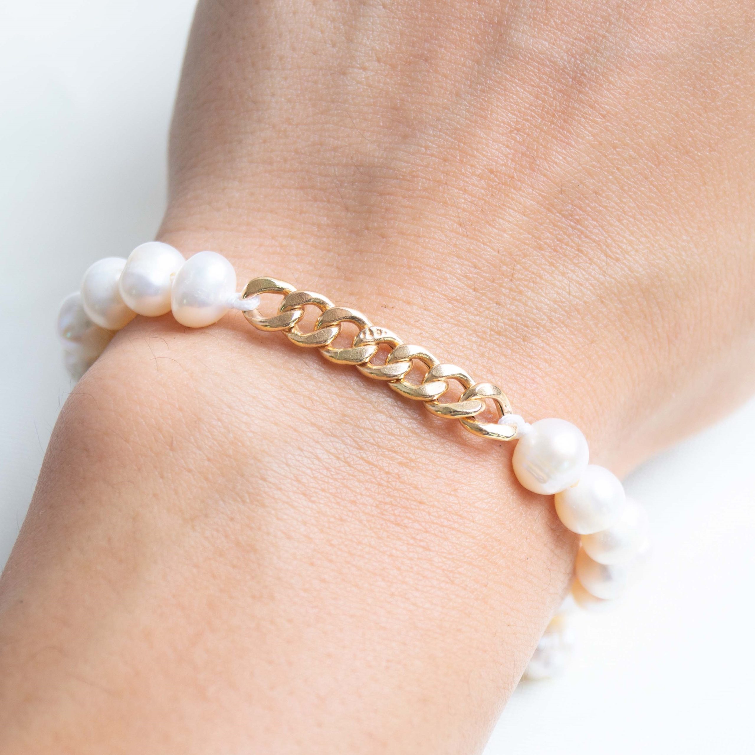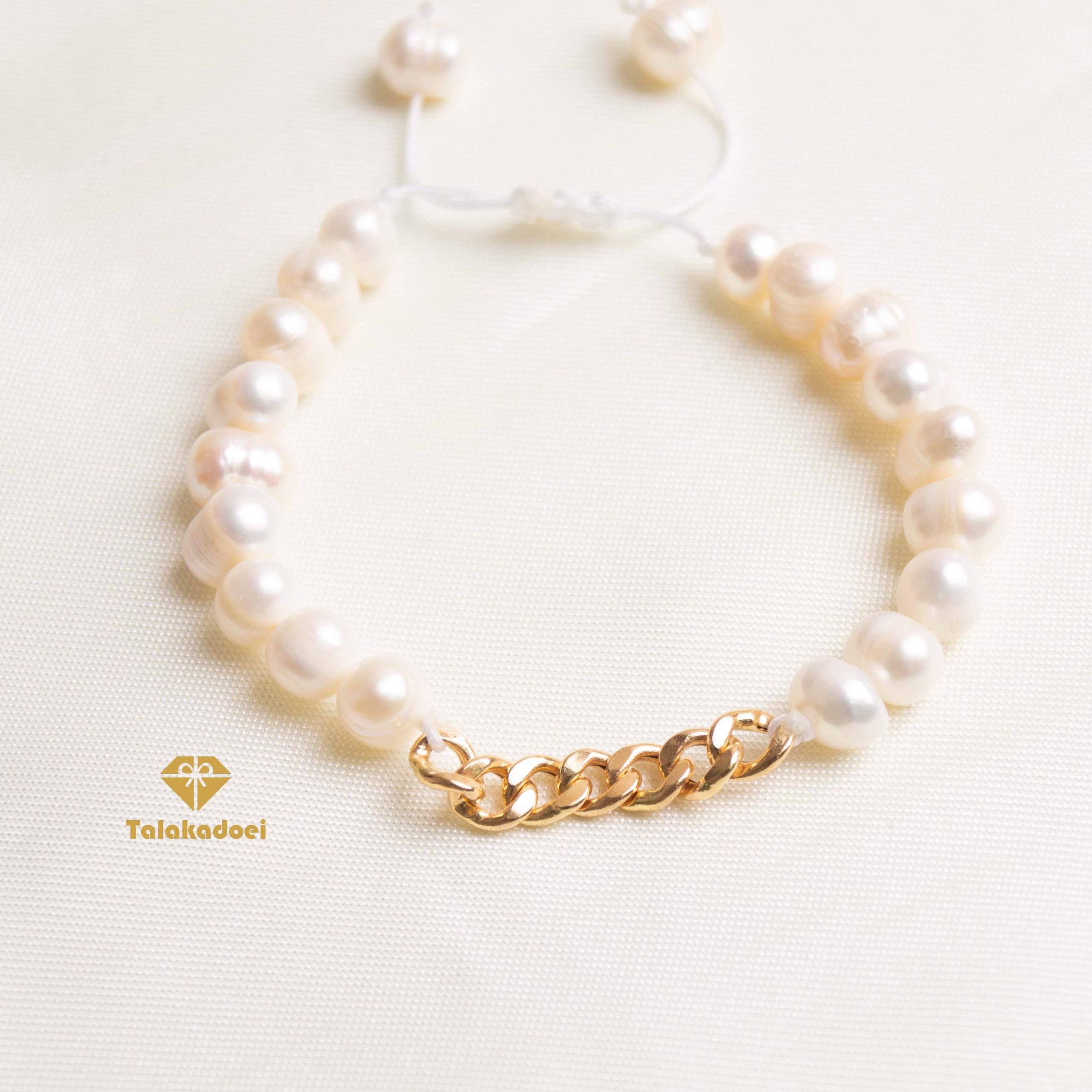 در این پست شما دستبند کارتیه مروارید پرورشی را مشاهده می کنید که از تعدادی مروارید پرورشی و یک تکه کارتیه زنجیری تشکیل شده است.