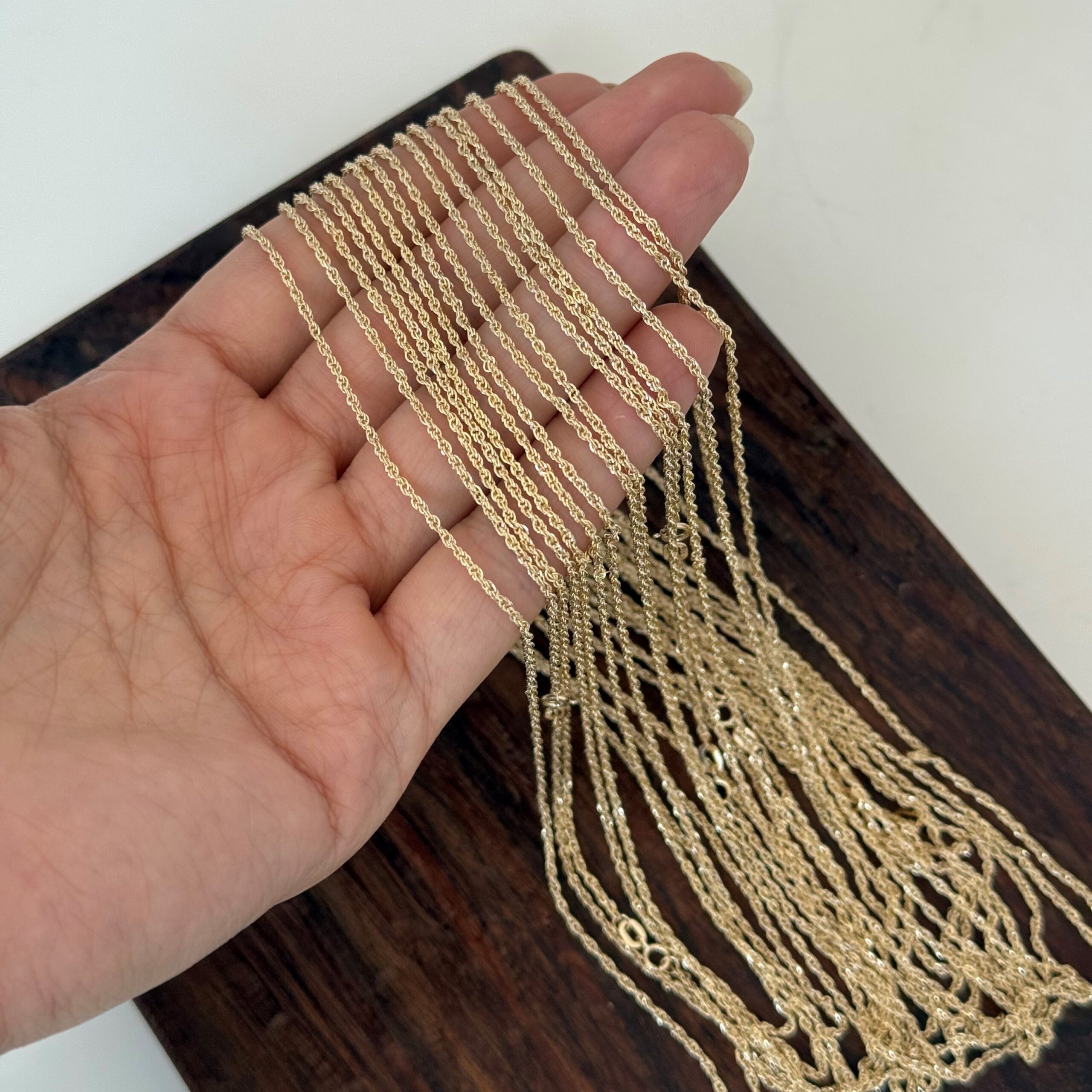در طلاکادویی، زنجیر طنابی با طلای ۱۸ عیار، در ضخامتها و طولهای مختلف موجوده و با ضمانت اصالت، فاکتور رسمی و ارسال سریع به دستتون میرسه.
