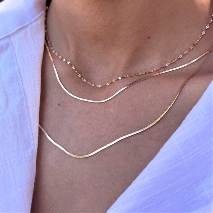زنجیر فیگارو طلا میتواند یک همراه عالی برای انواع پلاکها و آویزهای طلا باشد یا بهطور مستقل در استایل روزمره شما بدرخشد. این زنجیر به دلیل طراحی ظریف و متفاوت خود، هر نوع پوشش یا لباس را به سطحی جدید از شیک بودن میبرد و میتواند به عنوان یک هدیه ارزشمند و متفاوت به عزیزانتان ارائه شود.