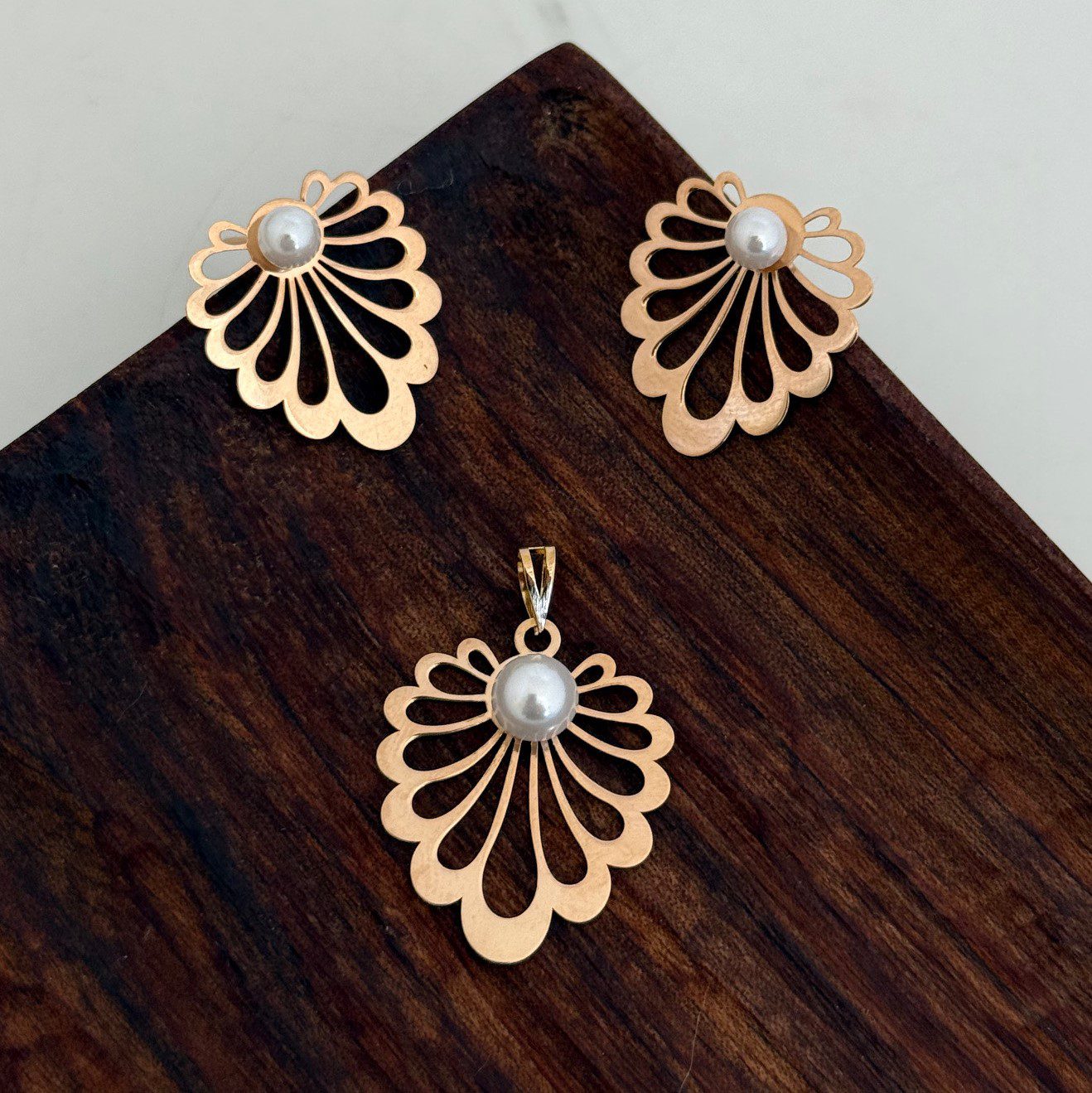 نیم ست طلا برگ انجیری مرواریدی از طلاکادویی