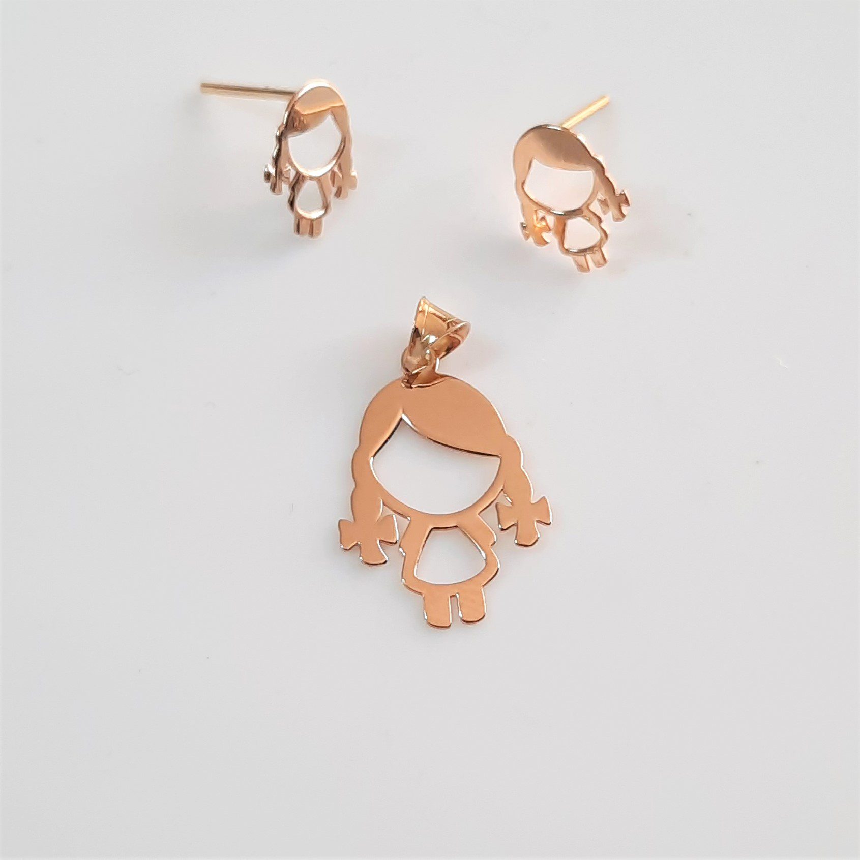 نیم ست طرح دختر که دارای یک پلاک تو گردنی بدون زنجیر و یک جفت گوشواره میخی است هم وزن مناسبی دارد و به دلیل فانتزی بودن آن مناسب خانم های جوان و کودکان می باشد.