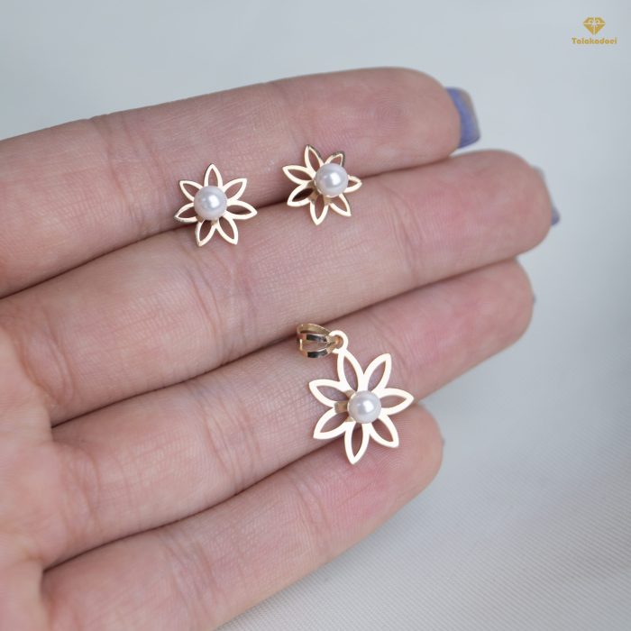 نیم ست طلا گل مرواریدی یکی از مدل های بسیار زیبا و نمادار با وزن سبک است که از طلای زرد 18 عیار ساخته شده است و مناسب خرید و همچنین هدیه دادن است.