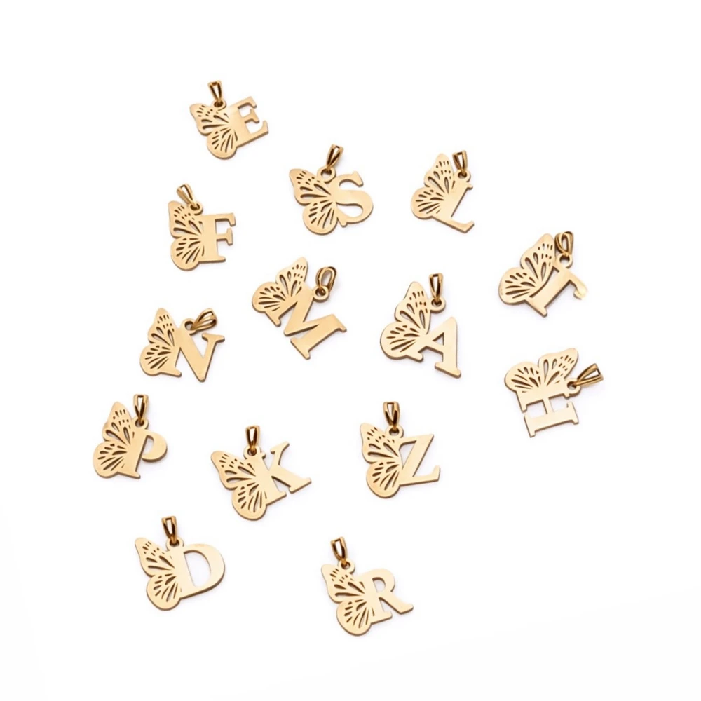 پلاک طلا حروف با تلفبق از از بال پروانه که زیبایی خاصی به پلاک طلا حروف داده است.