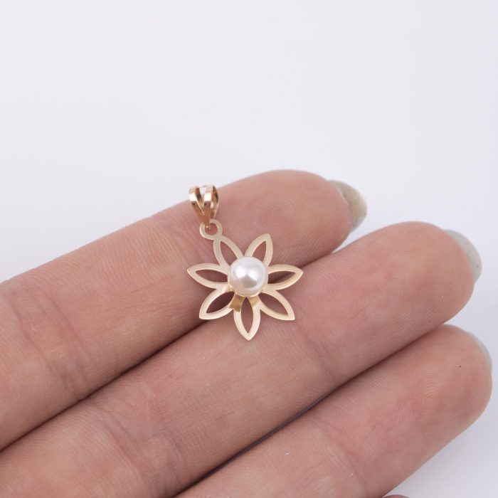 این مدل پلاک طلا زنانه از تلفیق مروارید و طلای زرد ساخته شده است و نمای فوق العاده زیبایی دارد و قرار گیری رنگ سفید مروارید در کنار طلای زرد هارمونی رنگ چشم نوازی ایجاد کرده است.