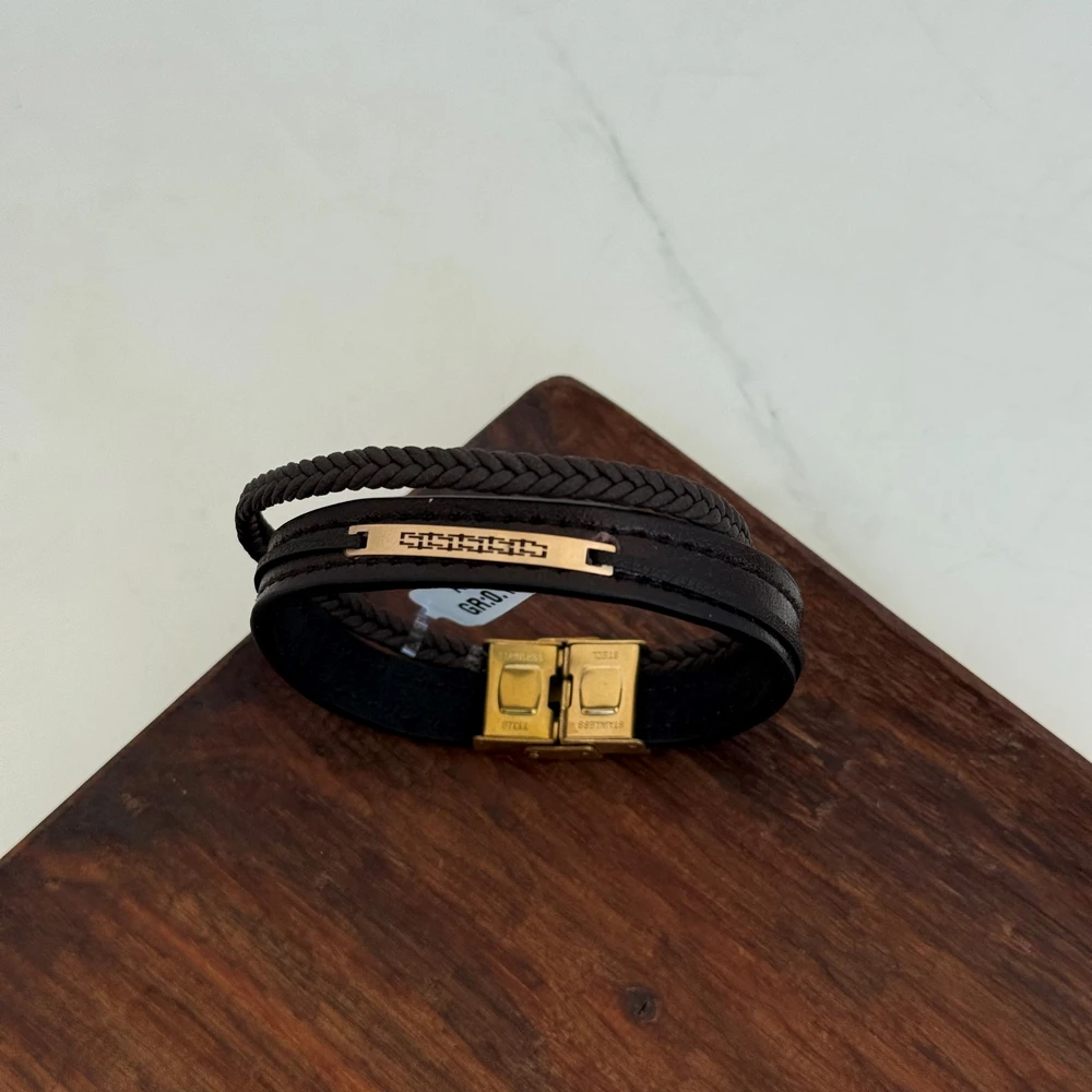 دستبند چرم و طلا کد 2077
