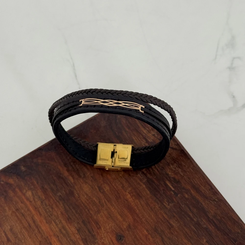 دستبند چرم و طلا مناسب برای هدیه دادن به آقایون بسیار نمادار و شیک