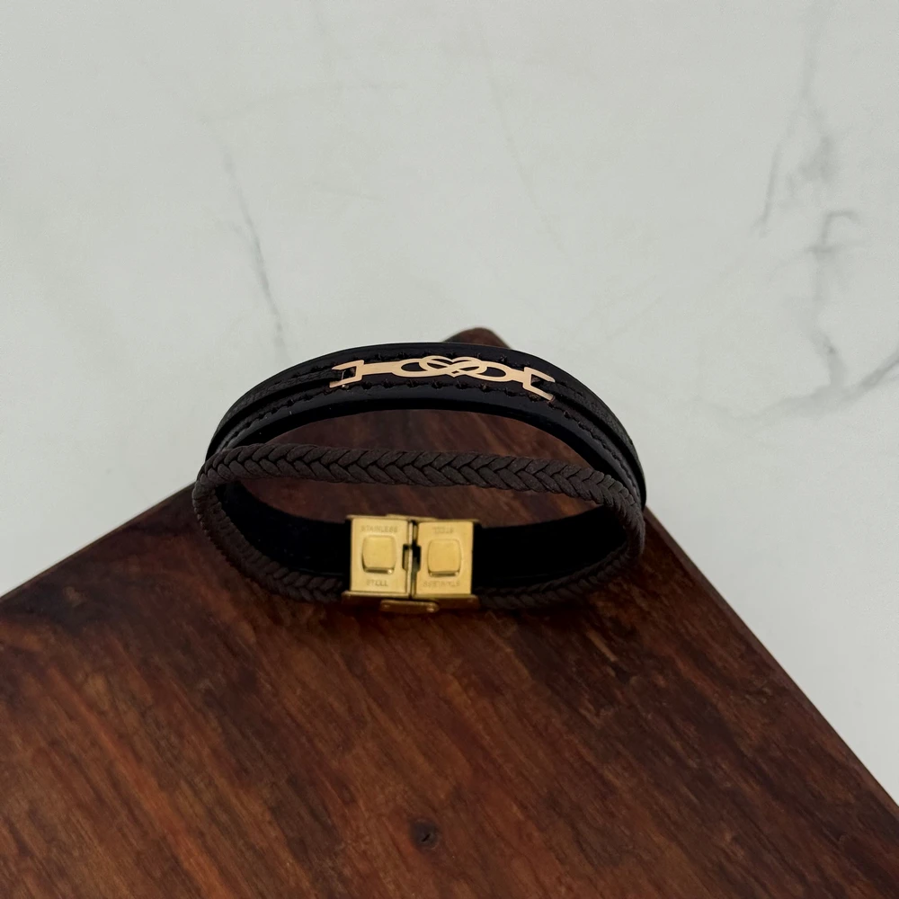 دستبند چرم و طلا مناسب برای هدیه دادن به آقایون بسیار نمادار و شیک