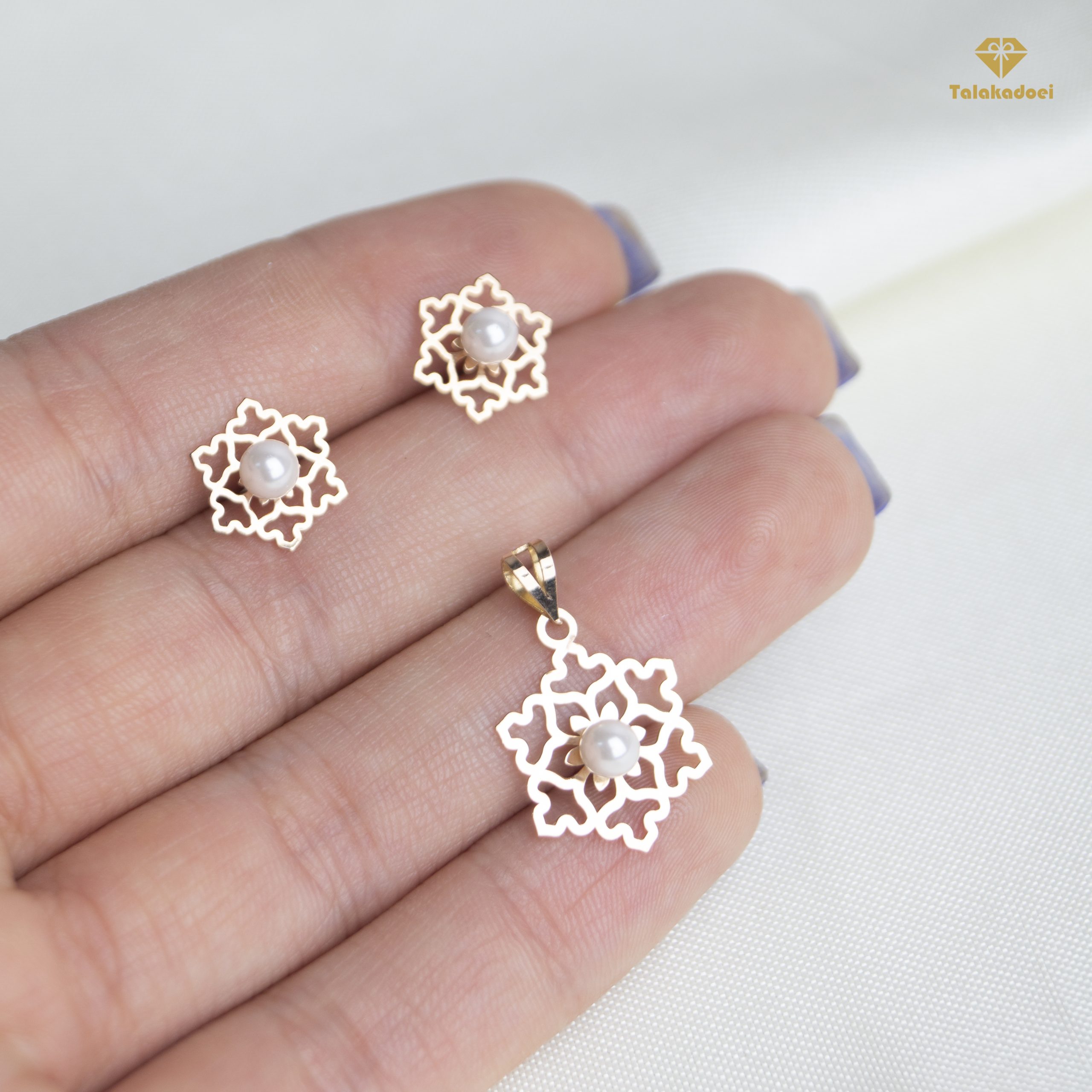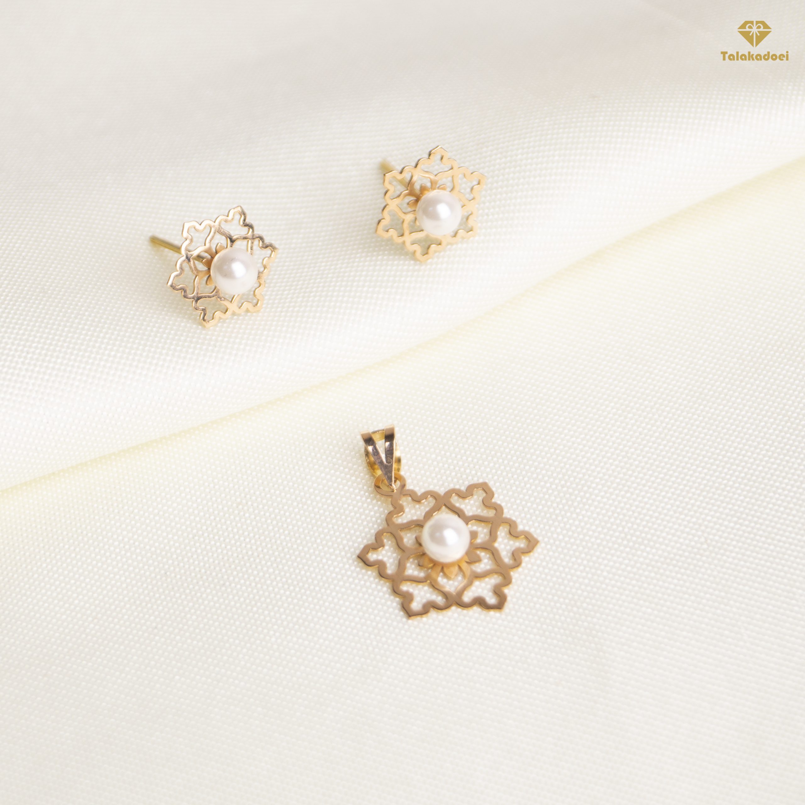 نیم ست طلا دونه برف مرواریدی یکی از مدل های بسیار زیبا و نمادار با وزن سبک است که از طلای زرد 18 عیار ساخته شده است و مناسب خرید و همچنین هدیه دادن است.