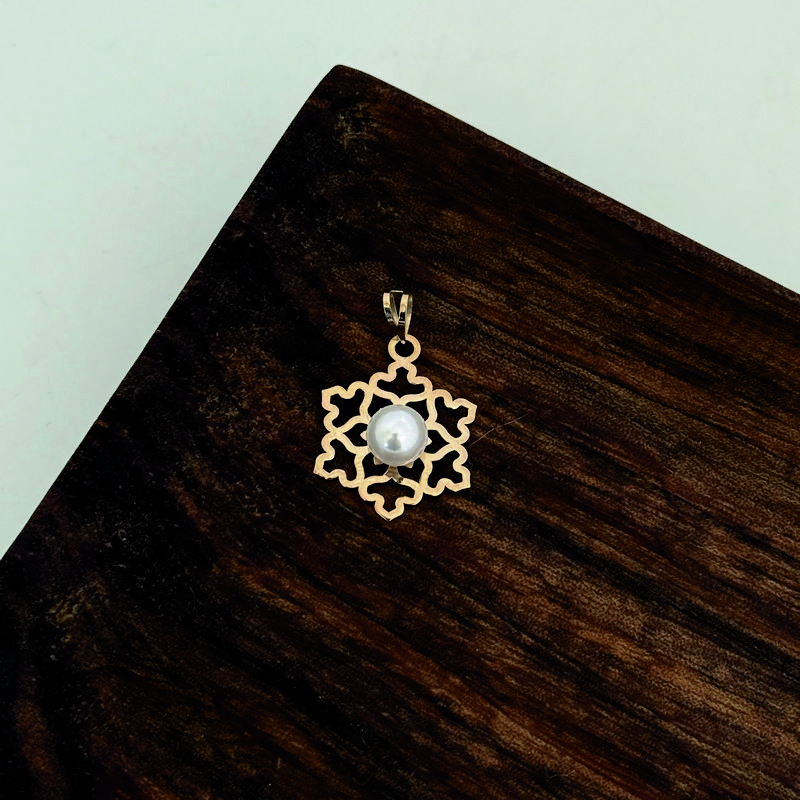 این مدل پلاک طلا زنانه از تلفیق مروارید و طلای زرد ساخته شده است و نمای فوق العاده زیبایی دارد و قرار گیری رنگ سفید مروارید در کنار طلای زرد هارمونی رنگ چشم نوازی ایجاد کرده است.
