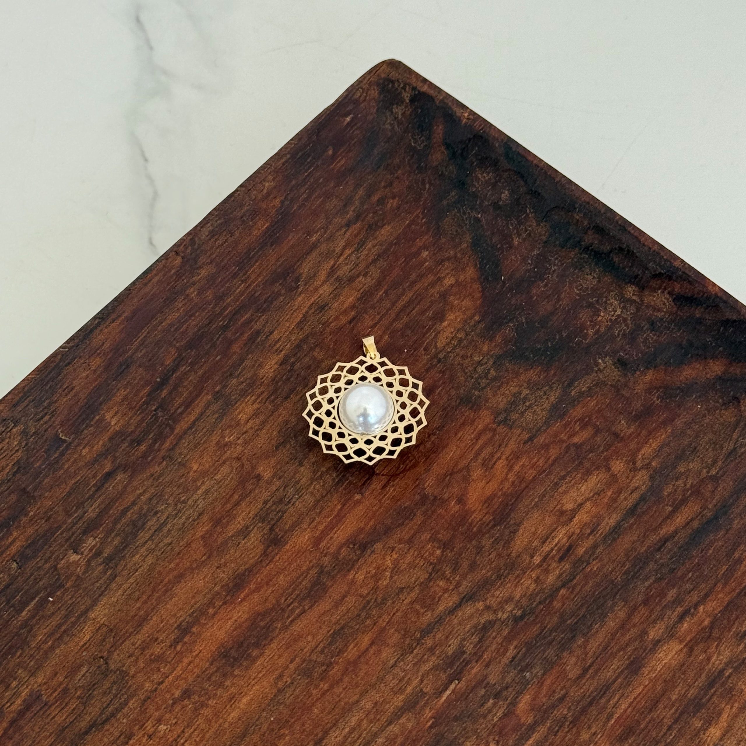 این مدل پلاک طلا زنانه از تلفیق مروارید و طلای زرد ساخته شده است و نمای فوق العاده زیبایی دارد و قرار گیری رنگ سفید مروارید در کنار طلای زرد هارمونی رنگ چشم نوازی ایجاد کرده است.
