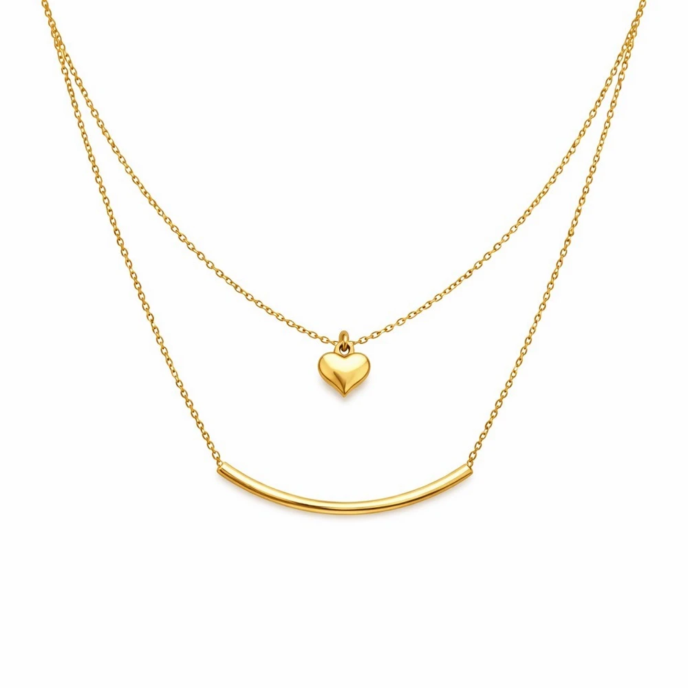گردنبند طلا دو رج قلب که در تصویر مشاهده میکنید بسیار ظریف و سبک طراحی شده است و این گردنبند طلا دخترانه جزو گردنبندهای طلا دو رج که دارای زنجیر طلا فلامینگو می باشد.