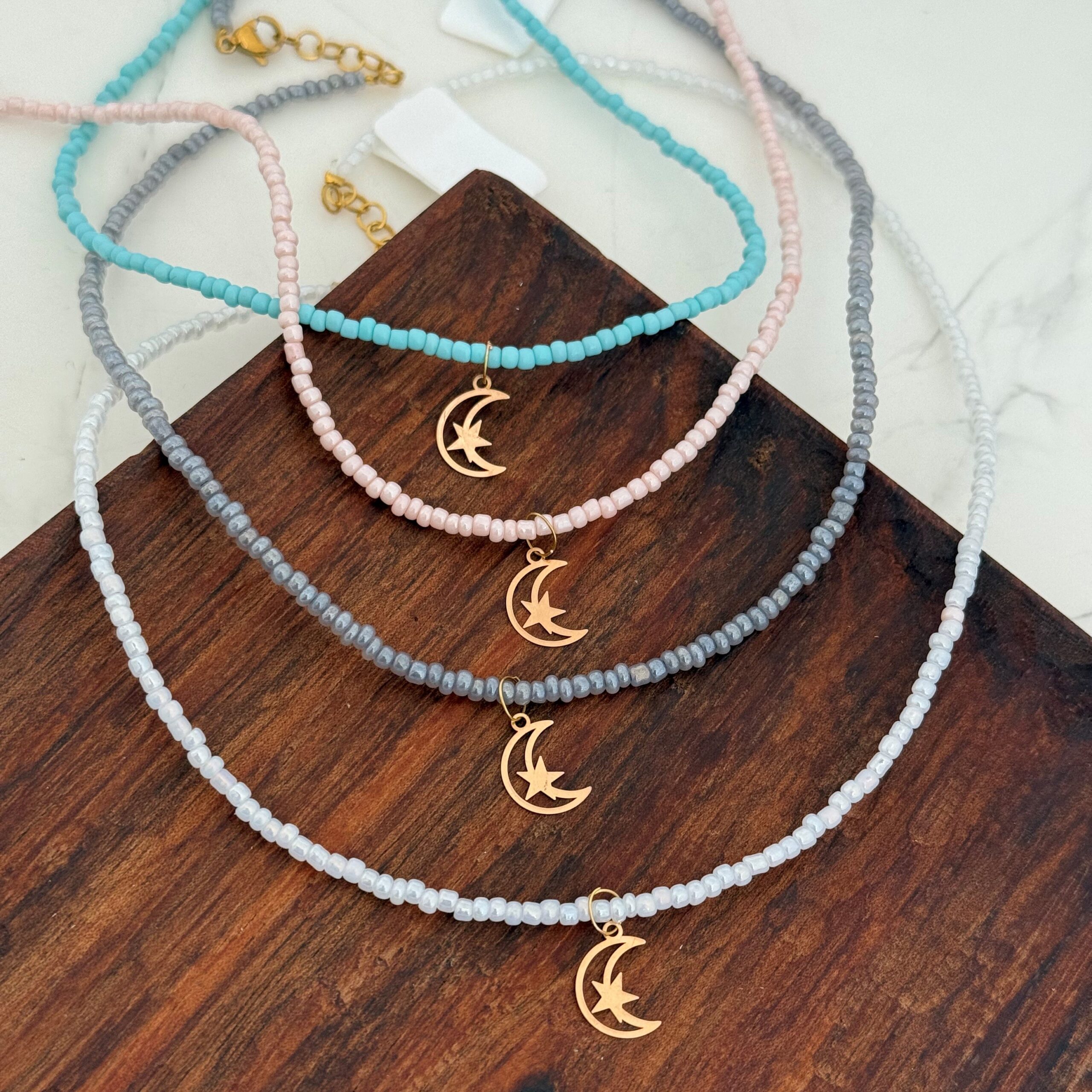 گردنبند سنگی فانتزی طرح ماه و ستاره