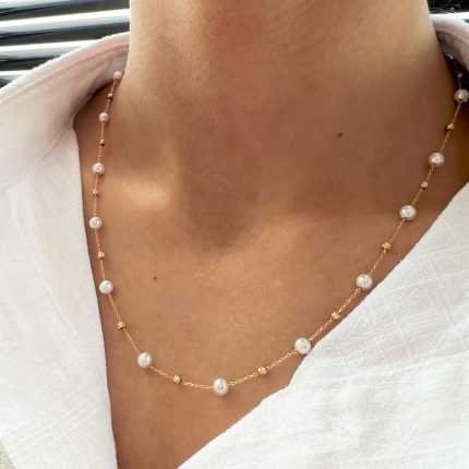 3. طلای ۱۸ عیار با کیفیت بالا: این گردنبند با طلای خالص ساخته میشود و درخشش ماندگاری دارد که هرگز از مد نمیافتد.