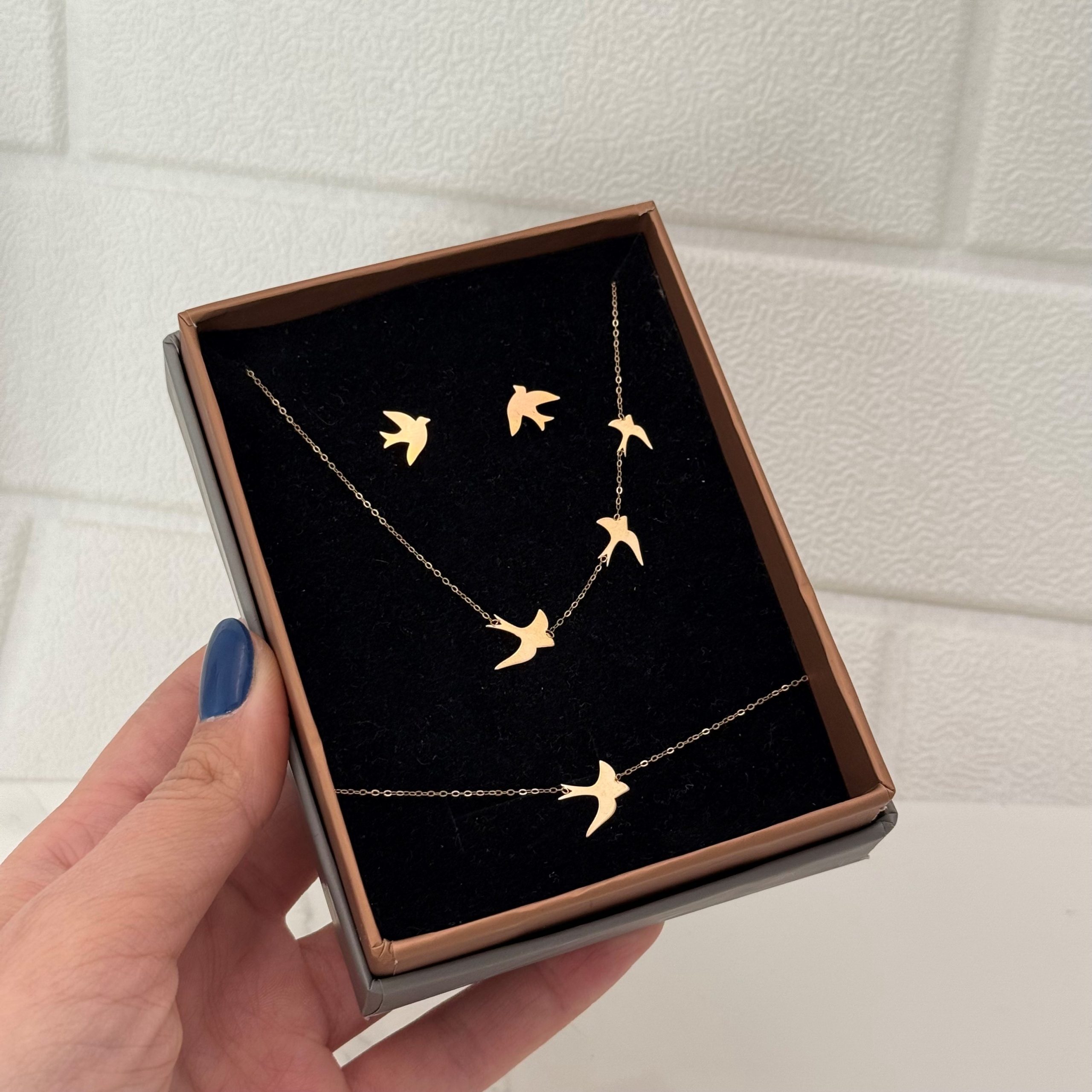 گردنبند طلا پرستو که نمادی از آزادی، خوششانسی، وفاداری، عشق و بازگشت به زندگی شناخته میشود.