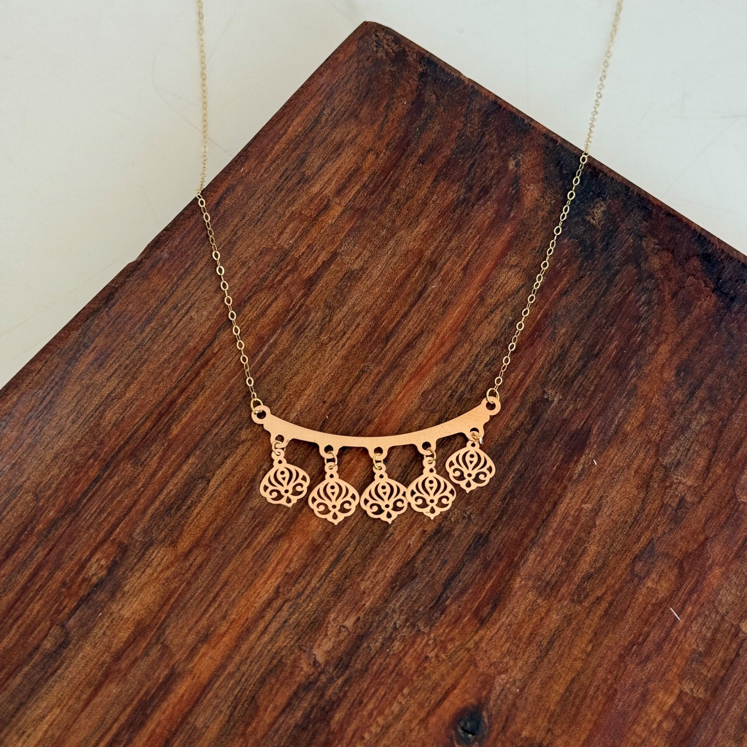 گردنبند لبخند سکه ای با آویز های سکه ای که این گردنبند دارد نما کار را بیشتر کرده است