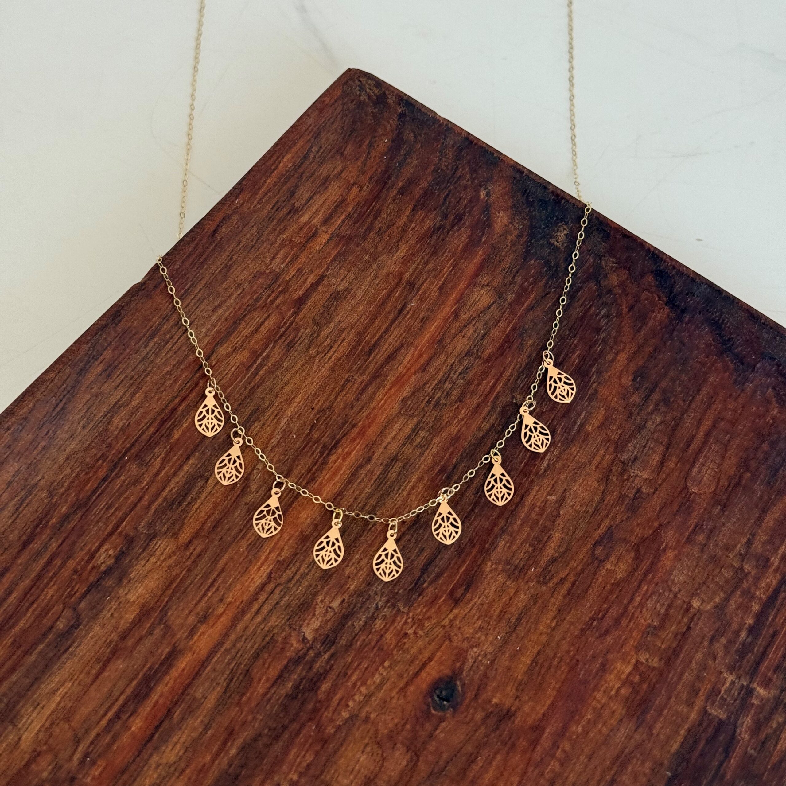 گردنبند لبخند سکه ای با آویز های سکه ای که این گردنبند دارد نما کار را بیشتر کرده است
