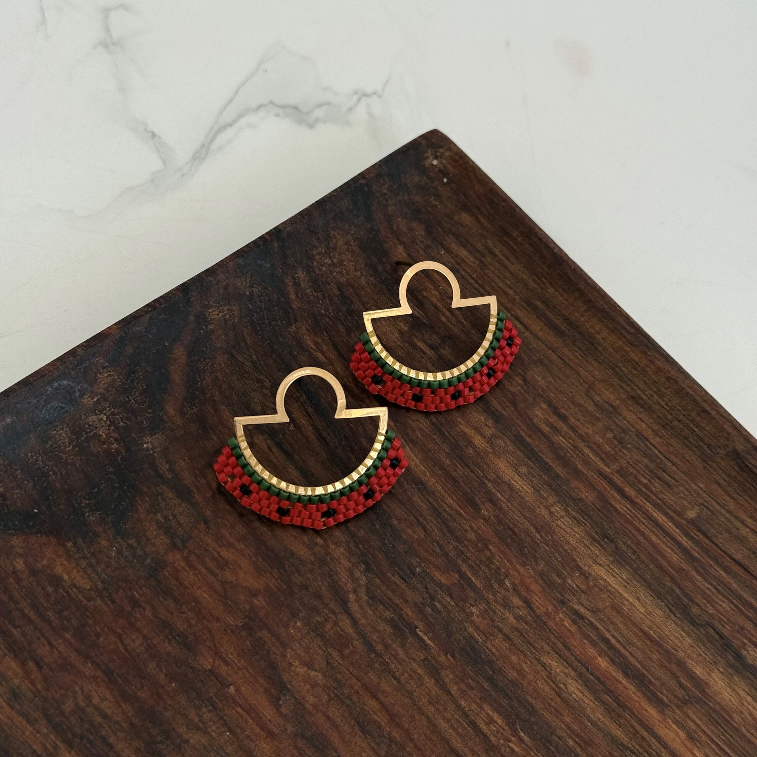 گوشواره میخی طلا ترکیب با منجوق های میوکی