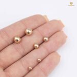 در این پست گوشواره گوی میخی داریم که وقتی بر روی لاله گوش مینشیند فقط گوی دیده میشود.گوشواره طلا ۱۸ عیار گوی با ظاهری ساده بر روی لاله گوش فوق العاده زیباست. گوی های میخی که به راحتی بر روی گوش می نشیند. در سایز های مختلفی وجود دارند.